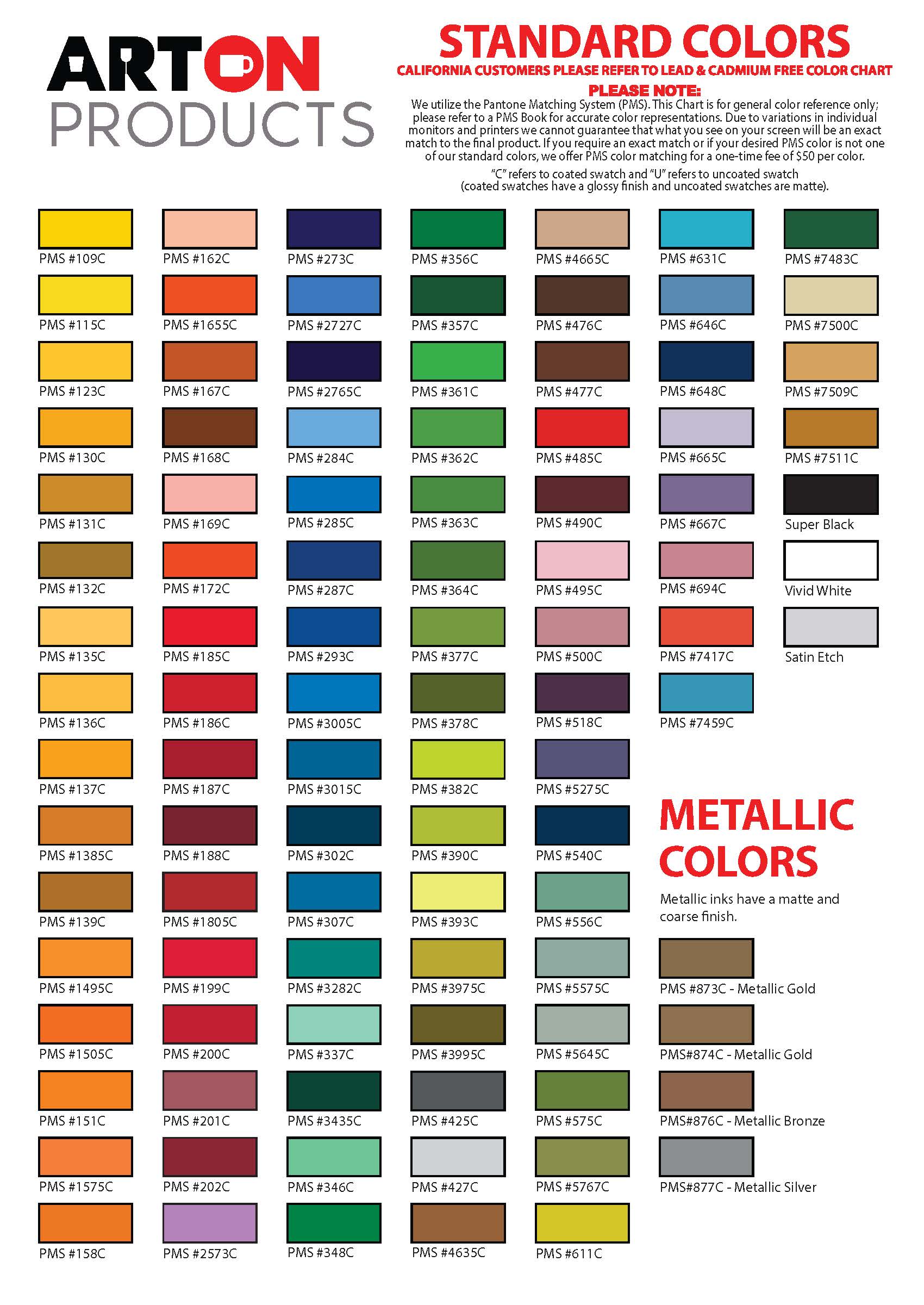 Lead Free Colors (California Customers)